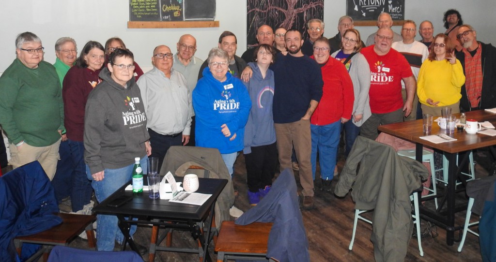 Aging with Pride, an organization of senior LGBT+ members and allies, develops and sponsors social/recreational and educational events to promote healthy leisure activities, community and an active, enjoyable lifestyle.